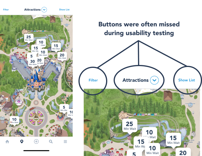 When people used the filters to find certain rides or locations on the map, they found that it was poorly grouped and unorganized. Some users didn’t even bother to try and use the filters because they were so confusing, and the ones who did weren’t very successful in completing the task.